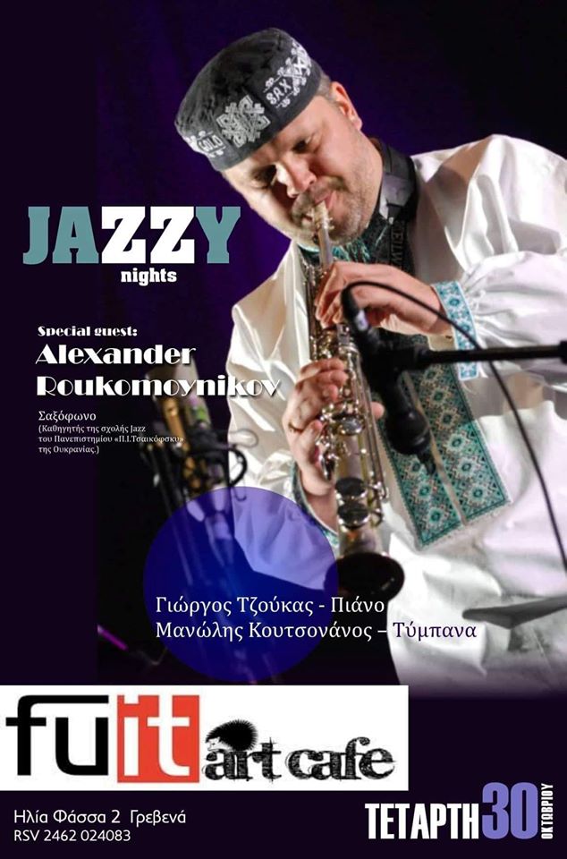 Jazzy Night στο fuit art cafe στα Γρεβενά με τον Ουκρανό σαξοφωνίστα Alexander Roukomoynikov, την Τετάρτη 30 Οκτωβρίου