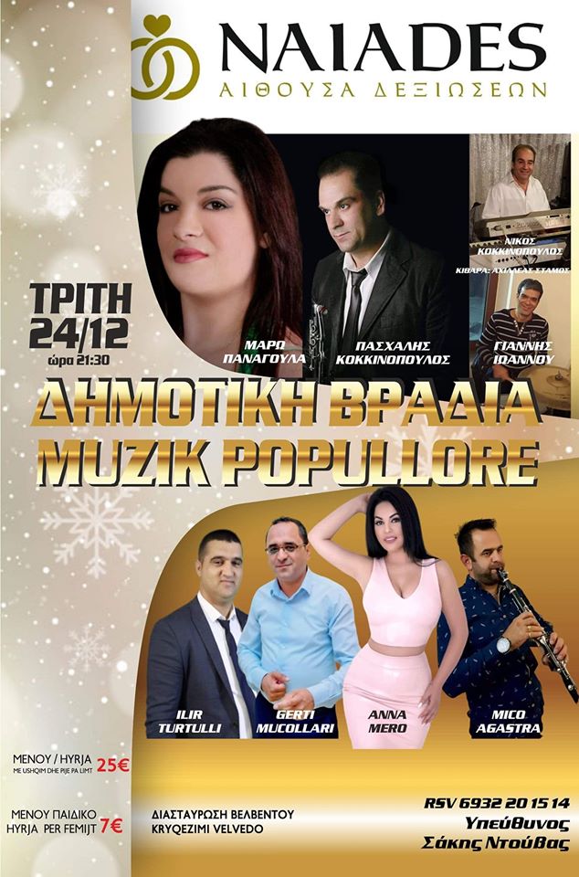 Δημοτική βραδιά στην αίθουσα δεξιώσεων Ναιαδες στα Σέρβια, το βράδυ της Τρίτης 24 Δεκεμβρίου