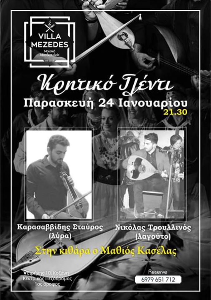 Κρητικό γλέντι στο Villa Mezedes στην Κοζάνη, την Παρασκευή 24 Ιανουαρίου