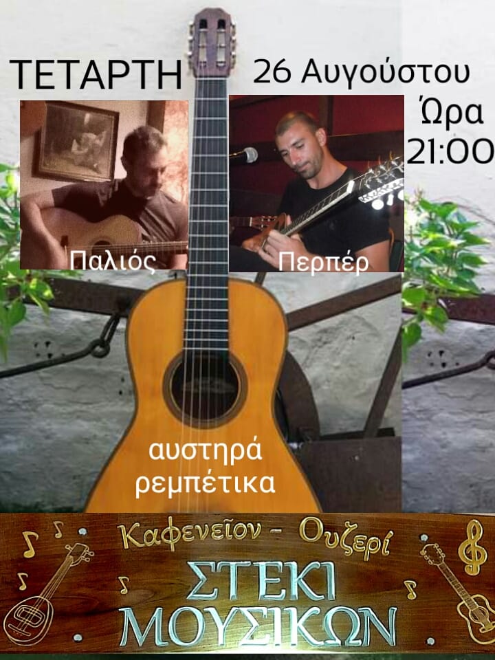 Αυστηρά ρεμπέτικα, την Τετάρτη 26 Αυγούστου, στο Στέκι Μουσικών στην Πτολεμαΐδα .
