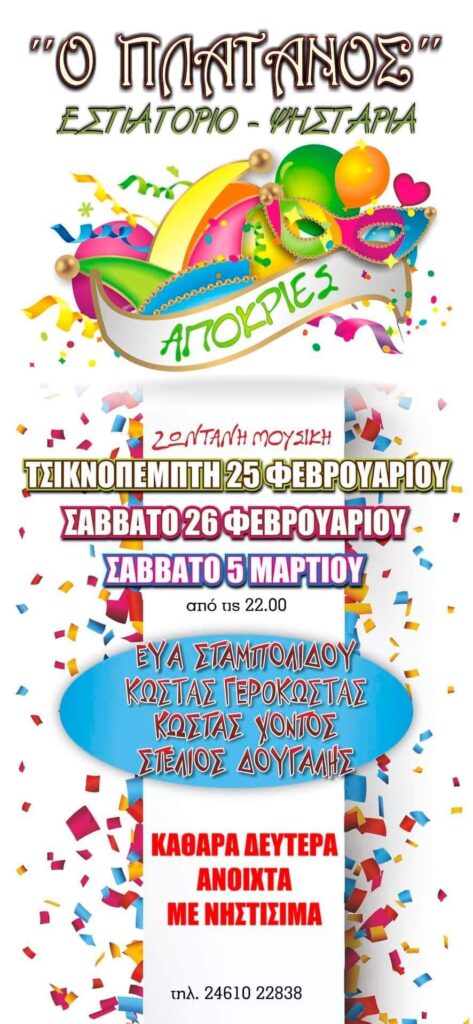 Αποκριές με ζωντανή μουσική στη ψησταριά “Ο Πλάτανος” στην Κοζάνη