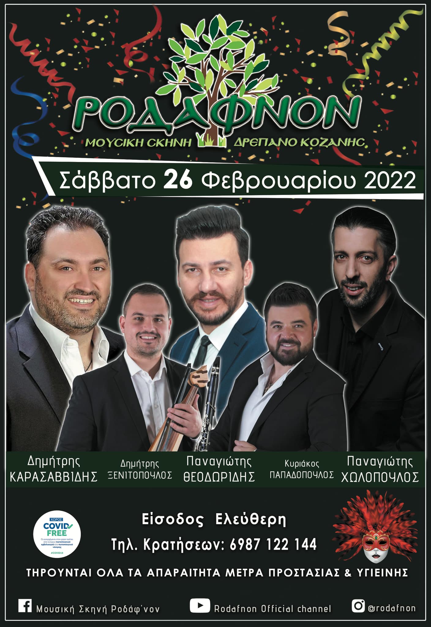 Ποντιακό γλέντι στη μουσική σκηνή “ΡΟΔΑΦΝΟΝ” στο Δρέπανο Κοζάνης, το Σάββατο 26 Φεβρουαρίου .