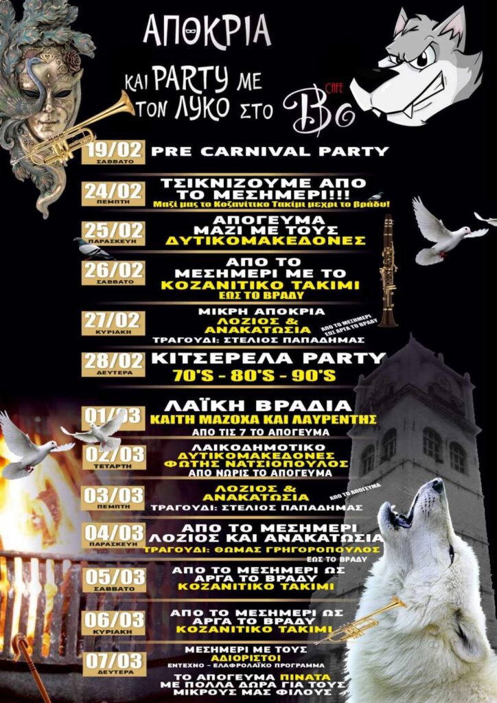 Αποκριά και party με τον λύκο στο cafe bar BO στην Κοζάνη – Αναλυτικό πρόγραμμα .