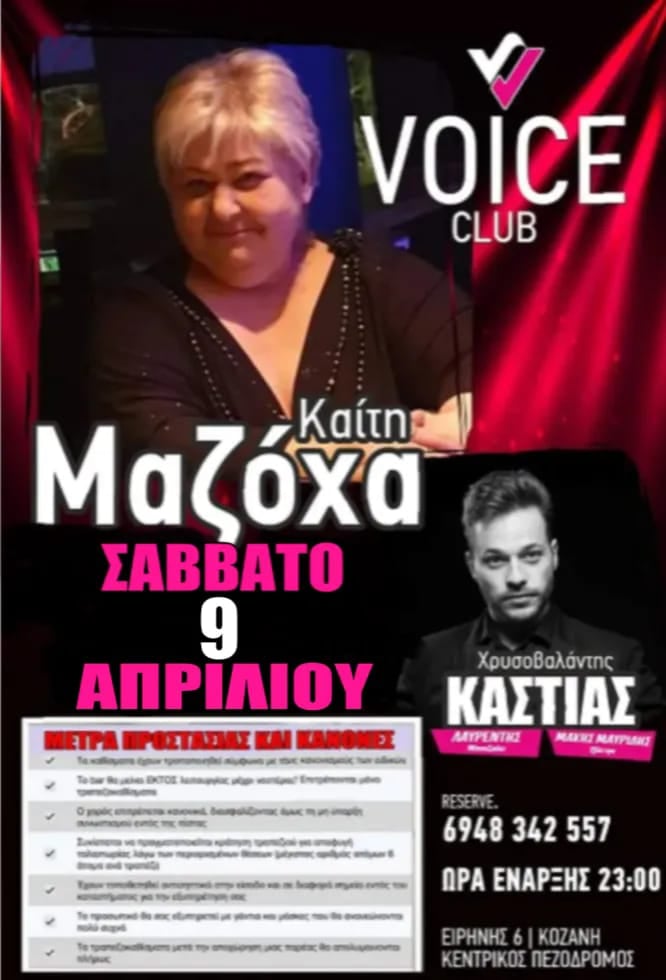 Η Καίτη Μαζόχα live στο Voice club στην Κοζάνη, το Σάββατο 9 Απριλίου