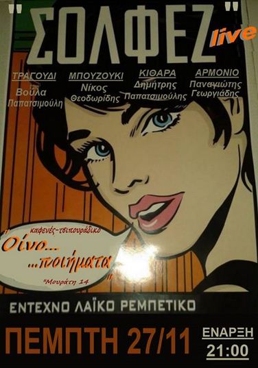 ΣΗΜΕΡΑ ΠΕΜΠΤΗ 27/11 ΣΑΣ ΠΕΡΙΜΕΝΟΥΜΕ ΓΙΑ ΕΝΑ ΑΞΕΧΑΣΤΟ “LIVE”ΜΕ ΤΟΥΣ “ΣΟΛΦΕΖ”!! ΠΟΥ ΘΑ ΧΟΡΕΨΟΥΜΕ ΚΑΙ ΘΑ ΤΡΑΓΟΥΔΗΣΟΥΜΕ ΠΑΡΕΑ ΩΣ ΤΟ ΠΡΩΙ!!!
