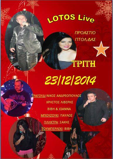 Lotos Live στο Προάστιο Εορδαίας:Ζωντανή μουσική την Τρίτη 23 Δεκεμβρίου
