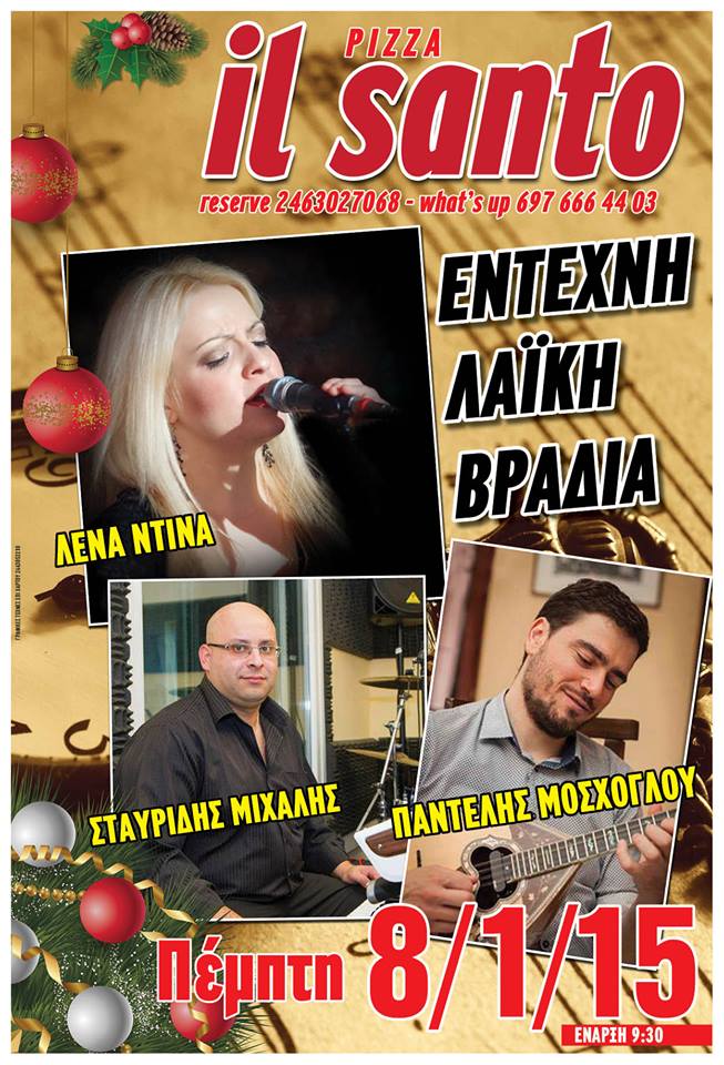 Il santo pizza: Έντεχνη λαϊκή βραδιά, Την Πέμπτη 8 Ιανουαρίου