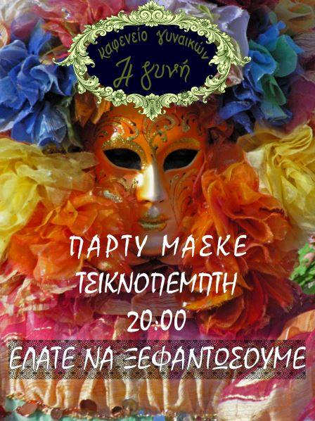 Μασκέ πάρτι στο Καφενείο γυναικών “Η γυνή”, την Τσικνοπέμπτη 12/2