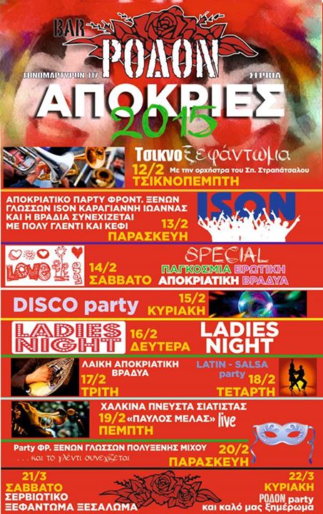 Το αποκριάτικο πρόγραμμα εκδηλώσεων του ΡΟΔΟΝ στα Σέρβια