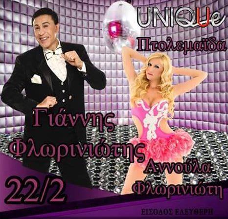 Γιάννης Φλωρινιώτης & Αννούλα LIVE στο UNIQUE all day bar Πτολεμαϊδα την Κυριακή 22/2