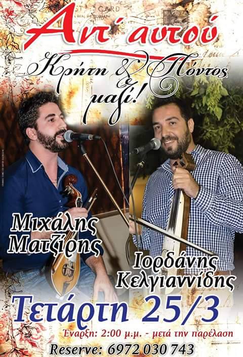 Κρήτη και Πόντος Μαζί στο “Αντ΄αυτού” στην Πτολεμαΐδα, την Τετάρτη 25 Μαρτίου