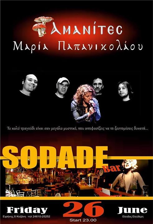 Οι “Αμανίτες” μαζί με την Μαρία Παπανικολάου live στο Sodade bar στην Κοζάνη, την Παρασκευή 26 Ιουνίου