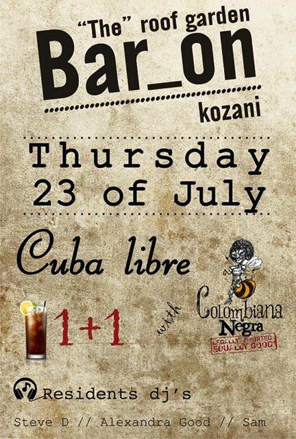 Cuba libre @ “The” roof garden Bar.on. στην Κοζάνη, την Πέμπτη 23 Ιουλίου