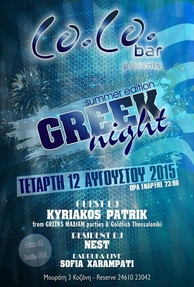 Greek night στο Co.Co. bar στην Κοζάνη, την Τετάρτη 12 Αυγούστου
