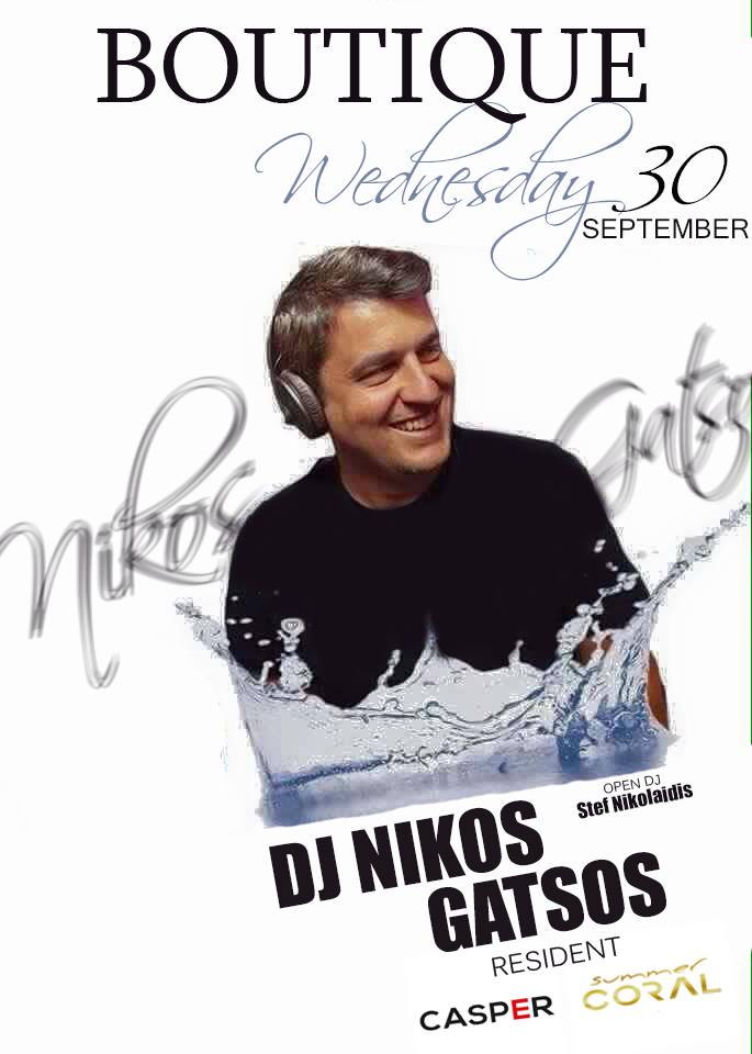 Ο dj NIKOS GATSOS στο Boutique Bar στην Πτολεμαϊδα, την Τετάρτη 30 Σεπτεμβρίου