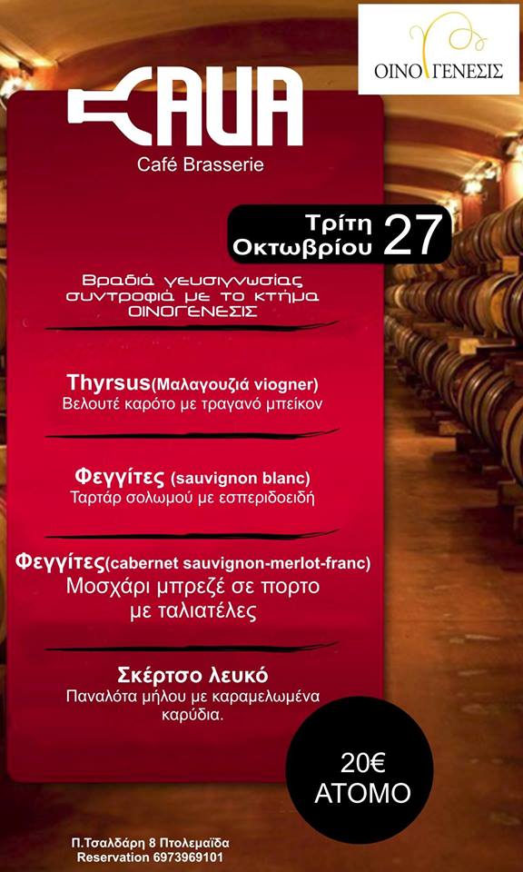 Βραδιά Γευσιγνωσίας στο Cava Cafe-Brasserie στην Πτολεμαϊδα, την Τρίτη 27 Οκτωβρίου
