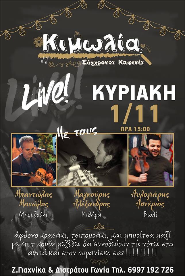 Ζωντανή μουσική στο σύγχρονο καφενέ Κιμωλία, την Κυριακή 1 Νοεμβρίου