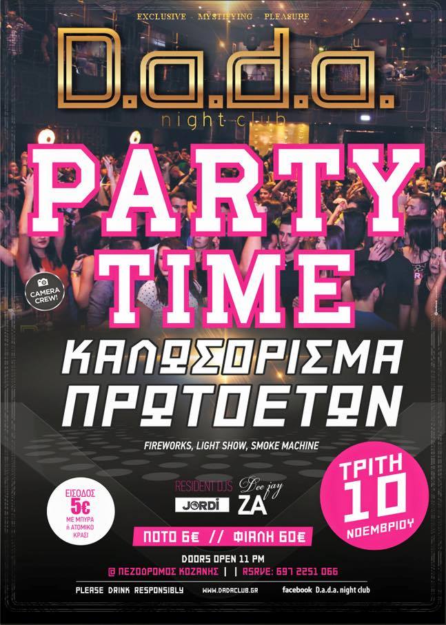 Da.da. club: Party time – Καλωσόρισμα πρωτοετών, την Τρίτη 10 Νοεμβρίου