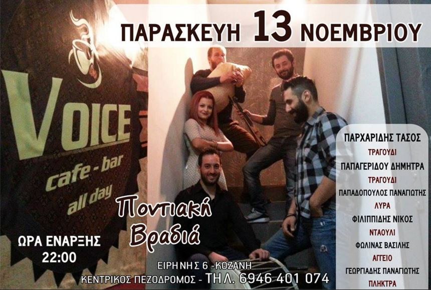 Ποντιακή βραδιά με τον Τάσο Παρχαρίδη, στο Voice cafe bar στην Κοζάνη, την Παρασκευή 13 Νοεμβρίου