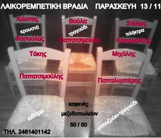 Λαϊκορεμπέτικη βραδιά στο μεζεδοπωλείο 50-50 στην Κοζάνη, την Παρασκευή 13 Νοεμβρίου