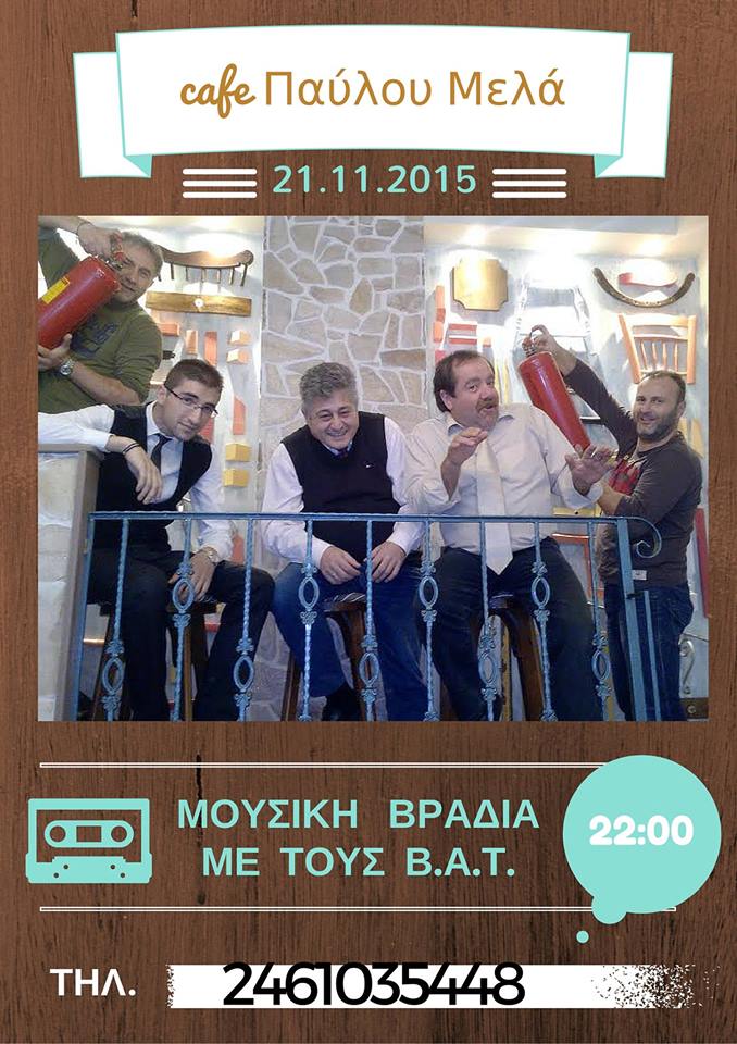 Μουσική βραδιά με του Β.Α.Τ. στο cafe Παύλου Μελά στην Κοζάνη, το Σάββατο 21 Νοεμβρίου