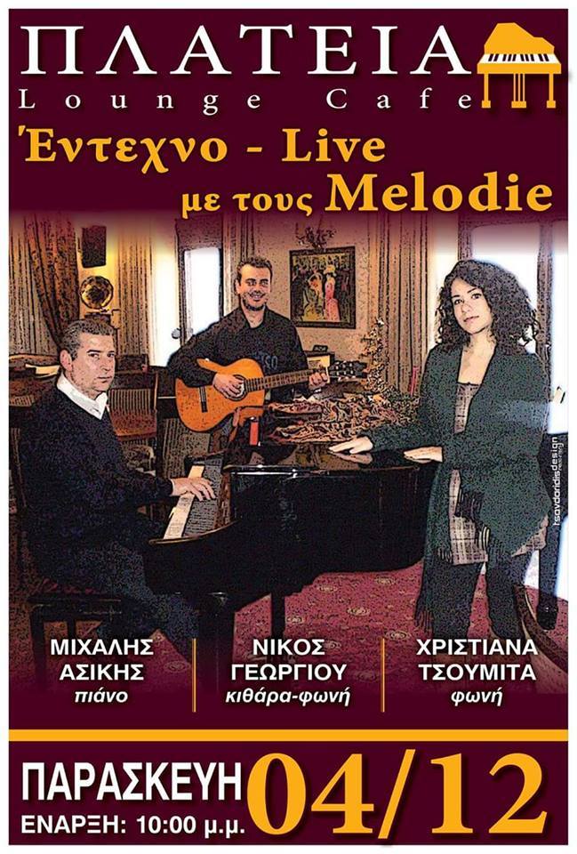 Έντεχνο Live με τους Melodie στο Lounge cafe Πλατεία στην Πτολεμαΐδα, την Παρασκευή 4 Δεκεμβρίου