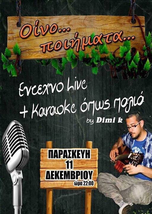 Έντεχνο Live και Karaoke στο Οινο.. ποιήματα στην Κοζάνη, την Παρασκευή 11 Δεκεμβρίου