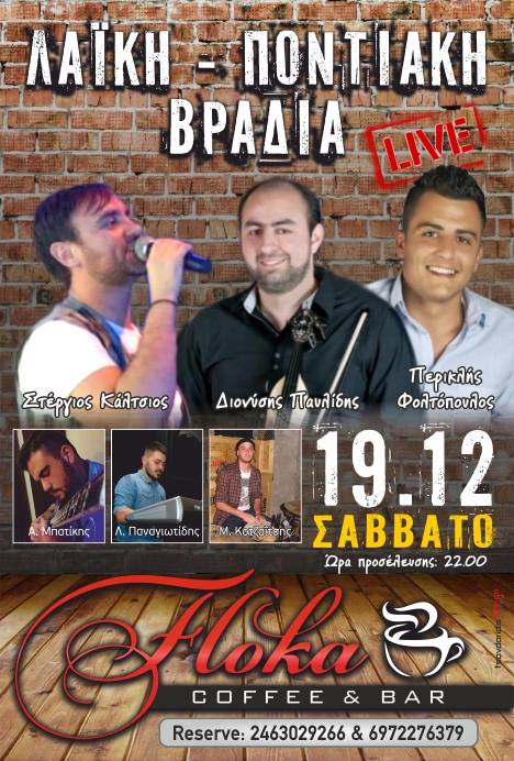 Ζωντανή λαϊκή ποντιακή βραδιά στο Floka cafe στην Πτολεμαΐδα, το Σάββατο 19 Δεκεμβρίου