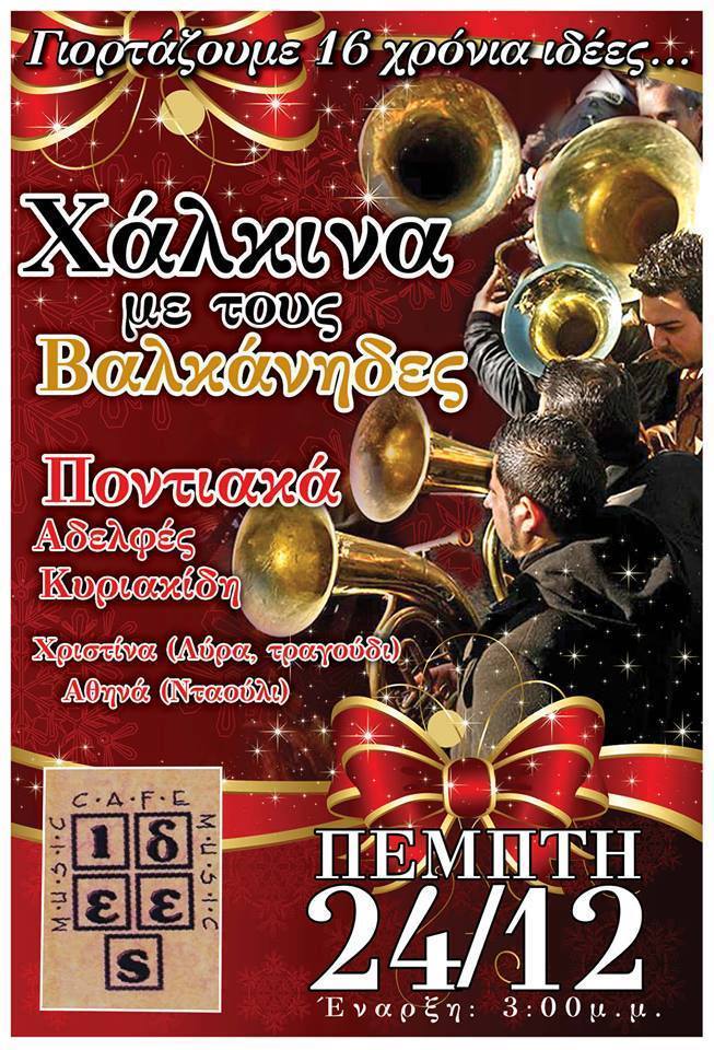 Γιορτάζουμε 16 χρόνια Cafe “Ιδέες”, με χάλκινα και ποντιακά την Πέμπτη 24 Δεκεμβρίου