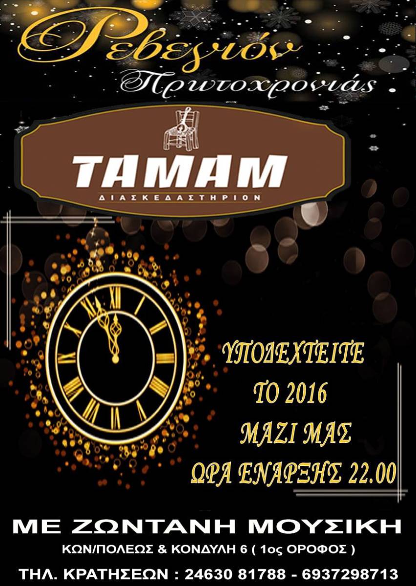 Ρεβεγιόν Πρωτοχρονιάς στο “Διασκεδαστήριον ΤΑΜΑΜ” στην Πτολεμαΐδα, ώρα έναρξης 22.00