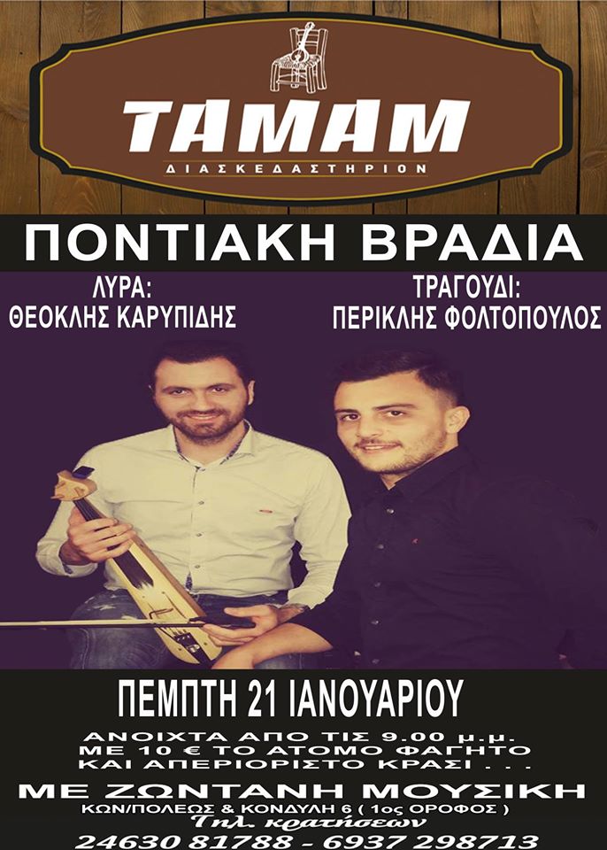 ΠΟΝΤΙΑΚΗ ΒΡΑΔΙΑ ΣΤΟ ΤΑΜΑΜ ΤΗΝ ΠΕΜΠΤΗ 21 ΙΑΝΟΥΑΡΙΟΥ