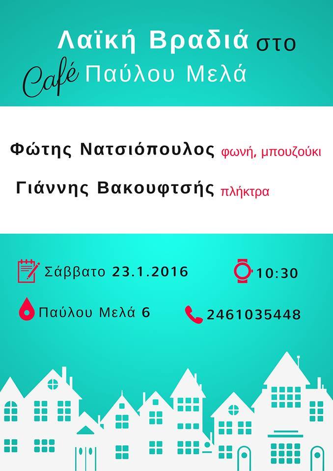 Λαϊκή βραδιά στο cafe Παύλου Μελά στην Κοζάνη, το Σάββατο 23 Ιανουαρίου