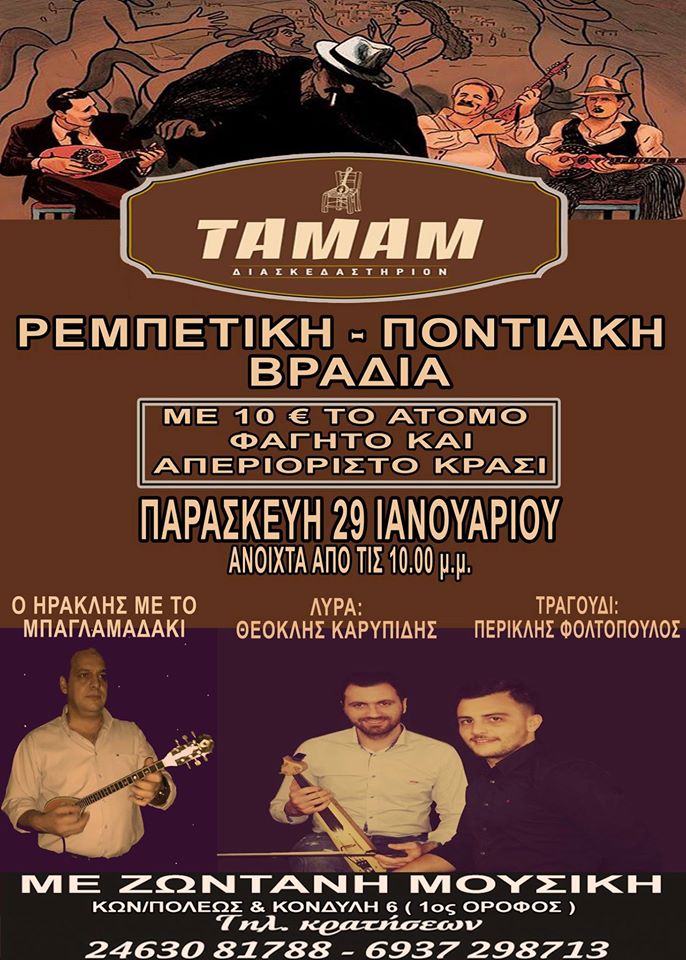 Ρεμπέτικη Ποντιακή βραδιά στο ΤΑΜΑΜ στην Κοζάνη, την Παρασκευή 29 Ιανουαρίου