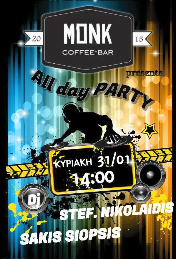 All day party @Monk caffee bar στην Πτολεμαΐδα, την Κυριακή 31 Ιανουαρίου, ώρα 14.00