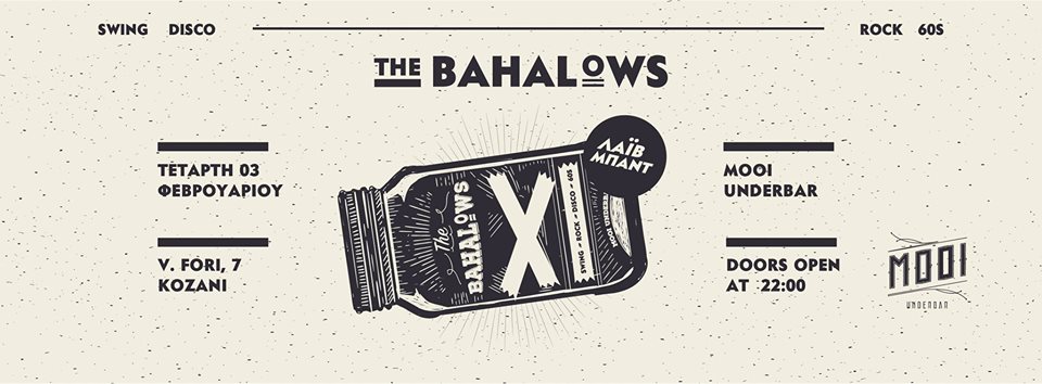 The Bahalows Band live στο MOOI under bar στην Κοζάνη, την Τετάρτη 3 Φεβρουαρίου
