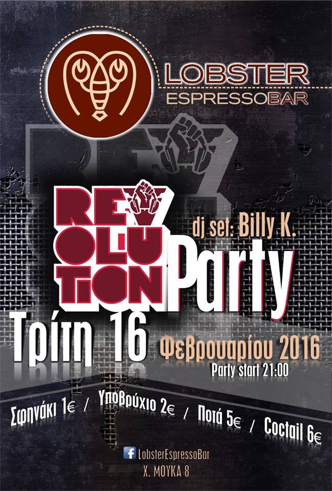 “Revolution Party” στο Lobster Espresso Bar στην Κοζάνη, την Τρίτη 16 Φεβρουαρίου