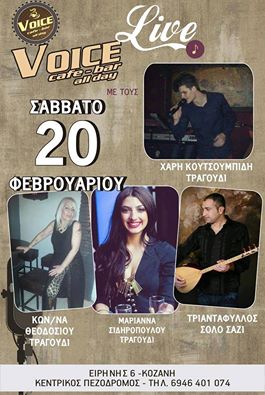 Ζωντανή μουσική βραδιά στο cafe bar Voice στην Κοζάνη, το Σάββατο 20 Φεβρουαρίου