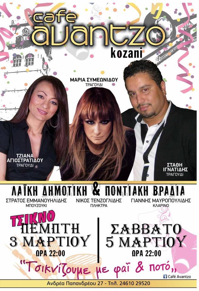 Τσικνοπέμπτη 3 Μαρτίου με ζωντανή μουσική, στο cafe Avantzo Κοζάνη
