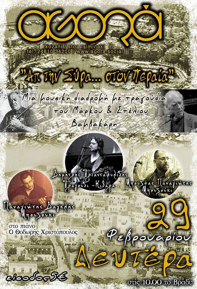 Από τη Σύρα στον Περαία Live στο Agora στην Κοζάνη, τη Δευτέρα 29 Φεβρουαρίου