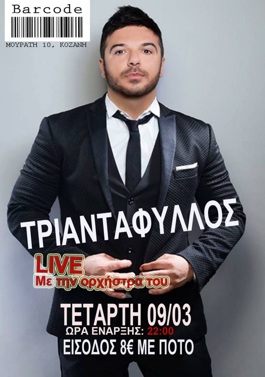 Ο Τριαντάφυλλος live με την ορχήστρα του στο Barcode στην Κοζάνη, την Τετάρτη 9 Μαρτίου