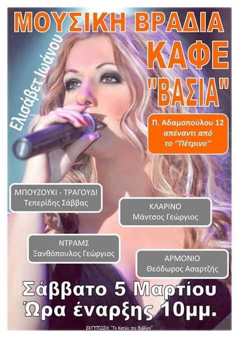 Ζωντανή μουσική βραδιά στο καφέ “Βάσια” στην Πτολεμαΐδα, το Σάββατο 5 Μαρτίου