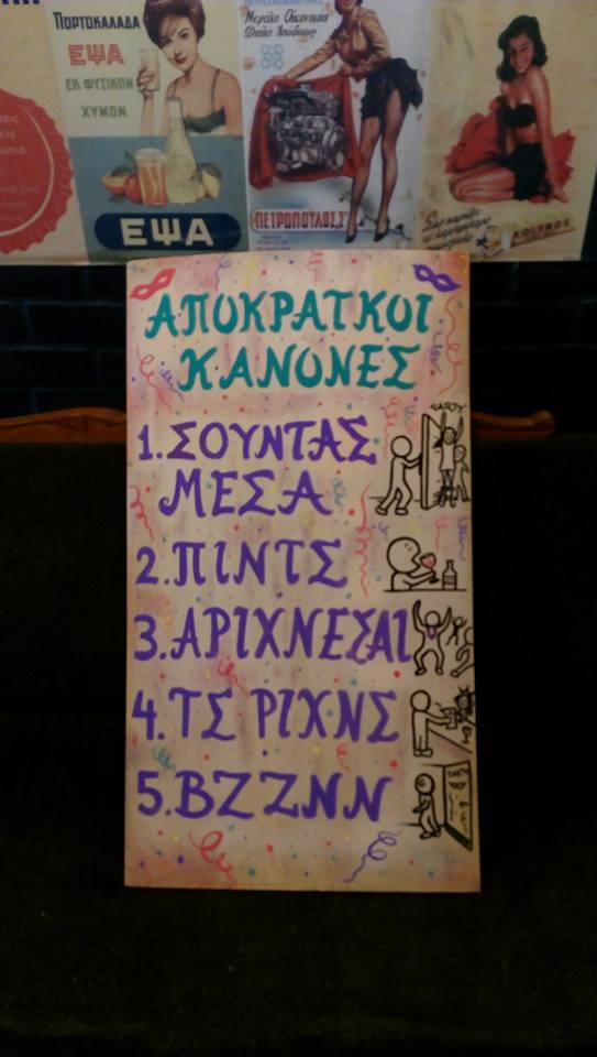 Oι αποκριάτικοι κανόνες του Sodade Cafe στον κεντρικό πεζόδρομο της Κοζάνης.