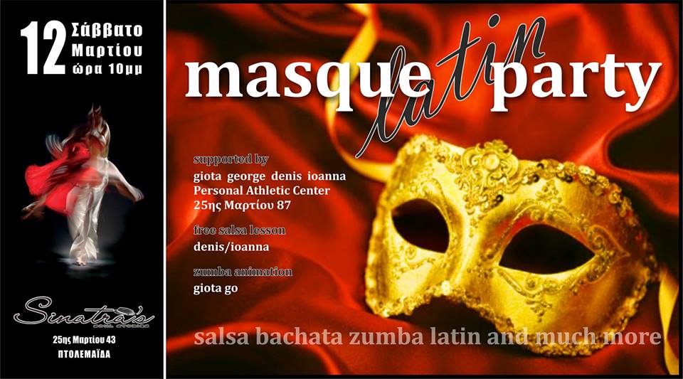 Masque latin party στο Sinatra’s Soul Stories bar στην Πτολεμαΐδα, το Σάββατο 12 Μαρτίου