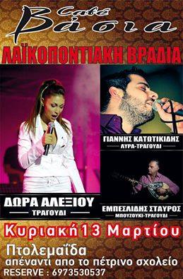 Λαϊκή ποντιακή βραδιά στο cafe Βάσια στην Πτολεμαΐδα, την Κυριακή 13 Μαρτίου
