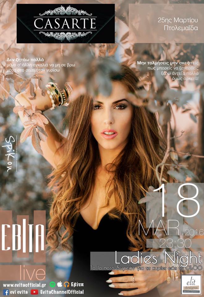Η Έβίτα Live στο Casarte club στην Πτολεμαϊδα, την Παρασκευή 18 Μαρτίου