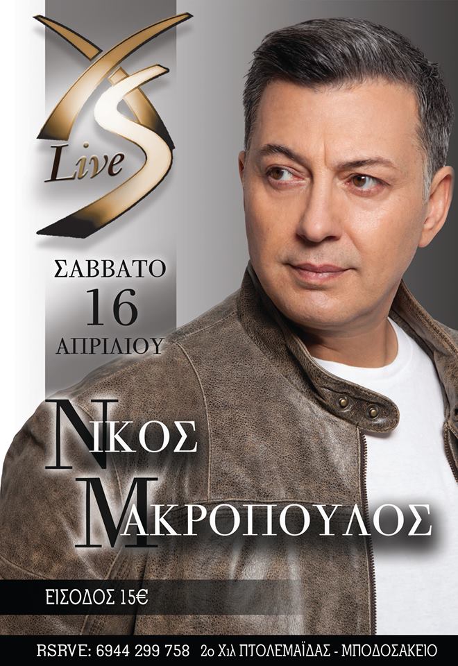 Ο Νίκος Μακρόπουλος το Σάββατο 16 Απριλίου στο xs live στην Πτολεμαΐδα