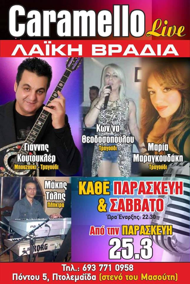 Λαϊκή βραδιά στο bar Caramello στην Πτολεμαΐδα, την Παρασκευή 25 Μαρτίου