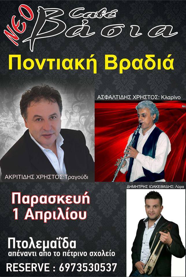 Ποντιακή βραδιά στο cafe Βάσια στην Πτολεμαΐδα, την Παρασκευή 1 Απριλίου