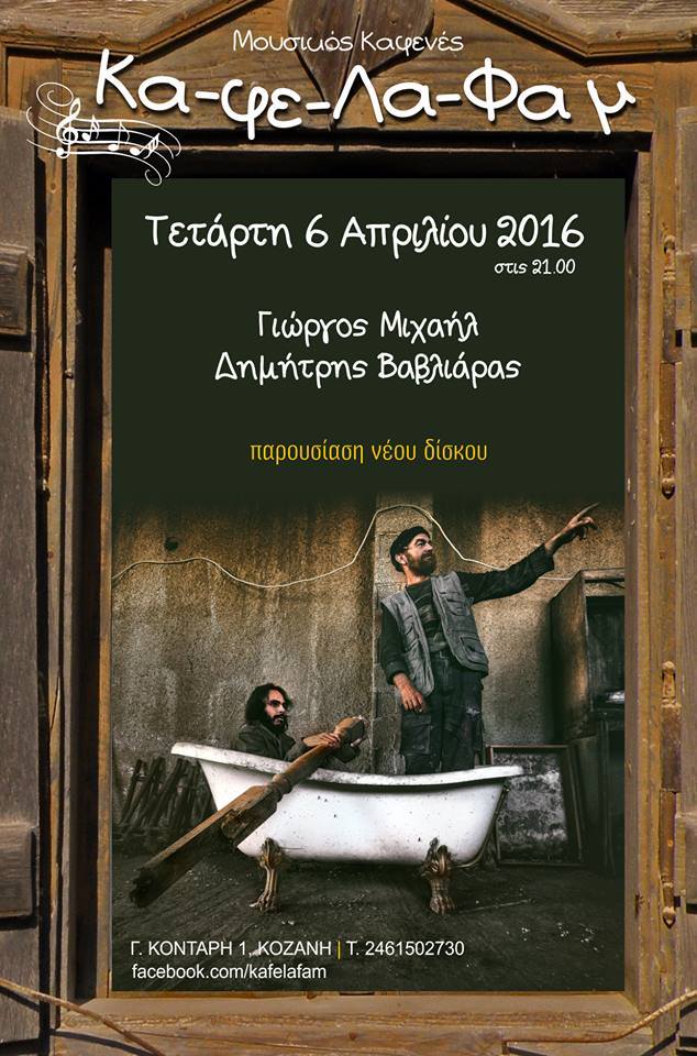 Παρουσίαση νέου δίσκου των Γ.Μιχαήλ και Δ.Βαβλιάρα στο Κα-φε-Λα-Φαμ στην Κοζάνη, την Τετάρτη 6 Απριλίου