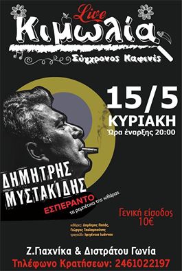 Live με τον Δημήτρη Μυστακίδη στον Καφενέ Κιμωλία στην Κοζάνη, την Κυριακή 15/5